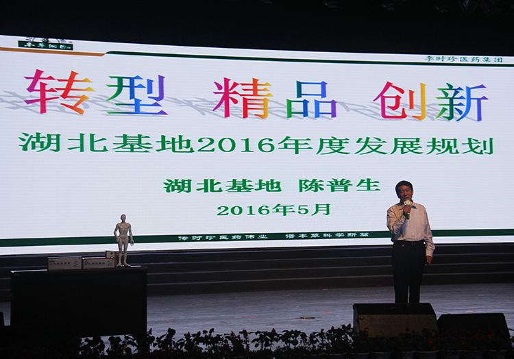 在2016年5月李时珍医药集团全国经理人会议期间,来自集团蕲春基地的陈普生总经理与厦门基地总经理助理谢毛成,先后就如何以市场为导向,推行精品、创新制药,向与会人员进行战略规划报告。