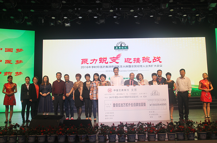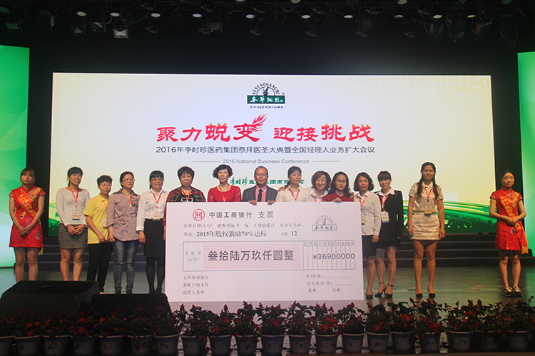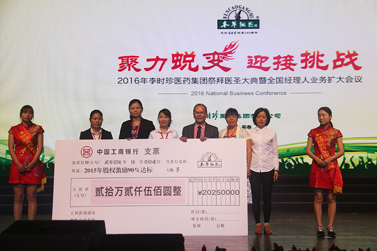 作为过去一年集团最为出色的业绩达标团队们依次登场,首先从集团林总裁手中接过股权激励分红支票的是2015年度100%达标的团队们,随后依次颁发90%、80%、70%达标的团队奖励支票。整个振奋人心的颁奖过程一共持续十几分钟,总颁奖金额更是高达500多万元。作为本次颁奖嘉宾的林总裁,更是在颁奖之后畅谈起其企业经营理念,他说:“李时珍医药集团不主张‘父传子,家天下‘的企业传承制,只要是能者,便可居之。不仅如此,其还讲到,如果有一天,工作的事情越少,但是企业的发展越好,李时珍医药集团才是真正的强大。”最后,林总裁还寄望明年能在舞台上遇见更多的团队,因为颁得越多,你们开心,我也开心。