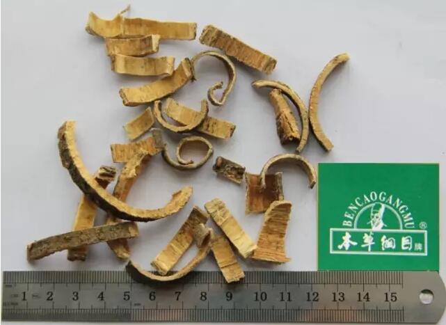 本品呈卷曲筒状或半筒状,长40~80cm,厚0.1~0.3cm。外表面灰棕色至灰褐色,稍有纵皱纹,有的成浅裂纹,密生明显的椭圆形横向皮孔,棕色或棕红色,偶有突起的横棱或较大的圆形枝痕,常附有地衣斑;内表面淡黄棕色或黄白色,平滑,有细密纵纹。质硬而脆,易折断,断面呈纤维性片状,淡黄棕色或黄白色。气微香,味淡、微涩、稍刺舌,而后喉头有不适感。