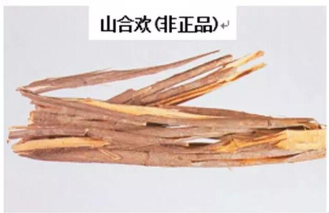 为豆科植物山合欢的干燥树皮。本品呈单卷筒状或槽状。长短不等,厚0.1-0.7㎝。外表面淡灰褐色、棕褐色或灰黑色相间,有的亦可见灰白色斑迹。较薄的枝皮上常可见棕色或棕黑色纵向裂开,易剥落,剥落处呈棕色。皮孔在较薄的皮上多而密集,呈横长或点状,棕色。内表面淡黄白色,具细纵纹。质坚,易折断,断面呈纤维状。气味均较合欢皮弱。