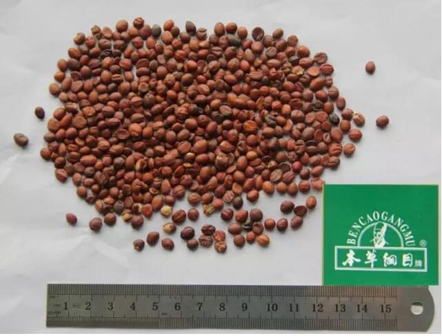 棕黄色,浅棕色。外形为扁平圆形,直径约3一5mm,厚约2mm,表面棕黑色或红褐色,油滑光亮,两面对称,平坦,无纵纹。种皮坚硬难碎,味稍苦、涩。