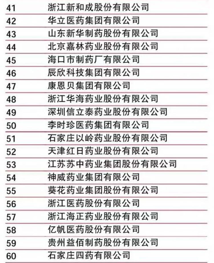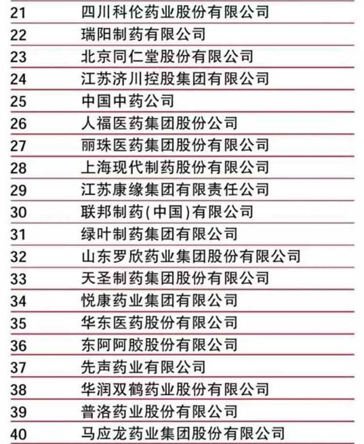 2.评选的统计指标口径为企业年度制药工业的销售收入金额(按中国会计准则统计)。