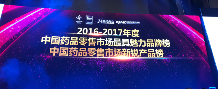 2017年7月4日-7月6日由CFDA南方医药经济研究所全程指导,标点信息(集团)、医药经济报、21世纪药店联合主办,广东二十一世纪药店报有限公司承办的“2017全国药店周暨第12届中国制药工业百强年会”在云南昆明隆重召开。大会最后一天晚上重磅发布了2016-2017年度中国药品零售市场魅力品牌榜/新锐产品榜。