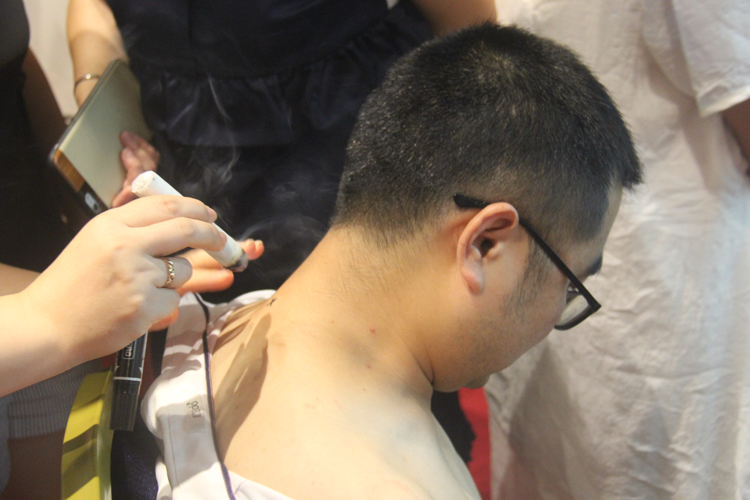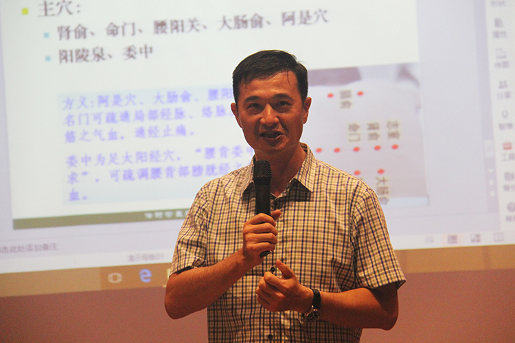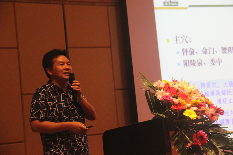 集团大健康事业部总经理关亚松介绍了经络、十二经脉组成、灸的注意事项、施灸顺序和灸疮处理、穴位及保健功效、肩周炎等常见病的诊治等。同时,现场举行艾灸,让参会者受益颇多。