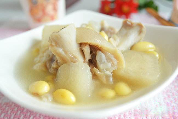原料:猪手1只,陈皮、南北杏仁各9克,干无花果100克,葱、姜、花椒适量。