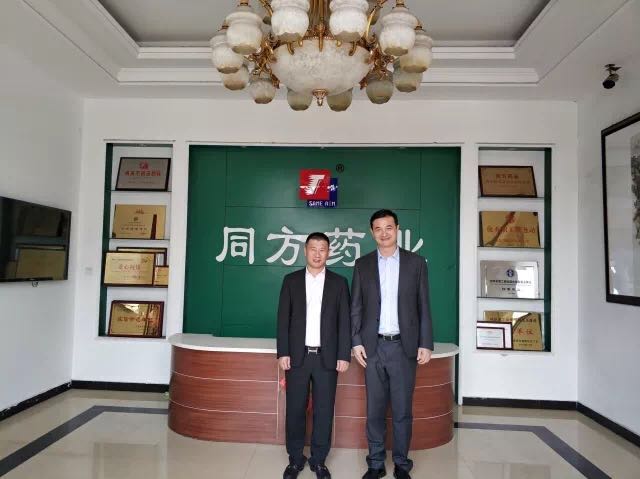▲集团总裁杨明江与同方药业董事长王元喜(左)