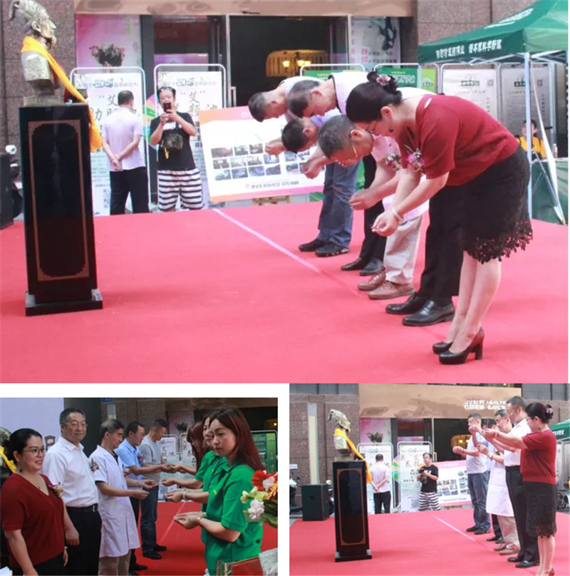 活动伊始,由四川省中医药学会副会长张毅先生、成都市医药商会会长邹康禄先生、四川川联民营企业人才发展促进会秘书长肖玉萍女士、成都市医药商会秘书长刘海及李时珍医药集团培训学院院长黄海龙先生先后上台发表了致辞,五人共同在李时珍圣像前进行了庄严的敬香祭拜仪式,随后,本次公益活动正式拉开序幕。