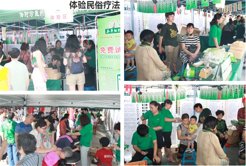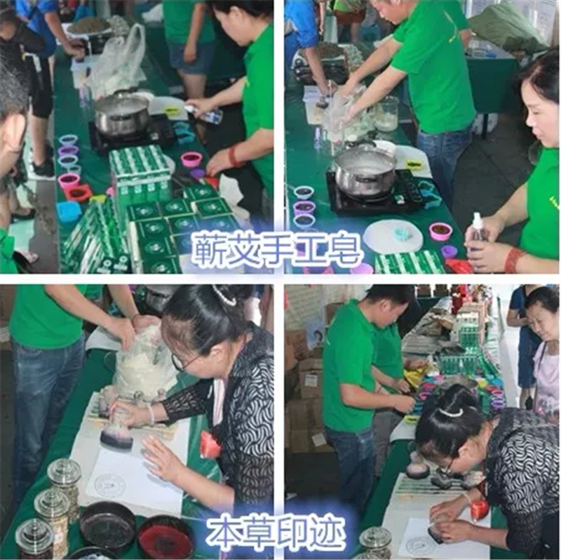 本次活动现场集团展出了酒系列、蕲艾系列产品、手工皂、本草印迹、艾香包、手工艾条等DIY活动,药食同源养生茶饮、蕲艾蛋免费品尝和麝香祛痛搽剂、艾灸等民俗疗法等体验活动,以及中药猜谜、赠送鲜艾草、包粽子比赛等活动。所有李时珍人统一着装,精神抖擞,积极投入到活动工作中,现场人潮汹涌,气氛热烈。