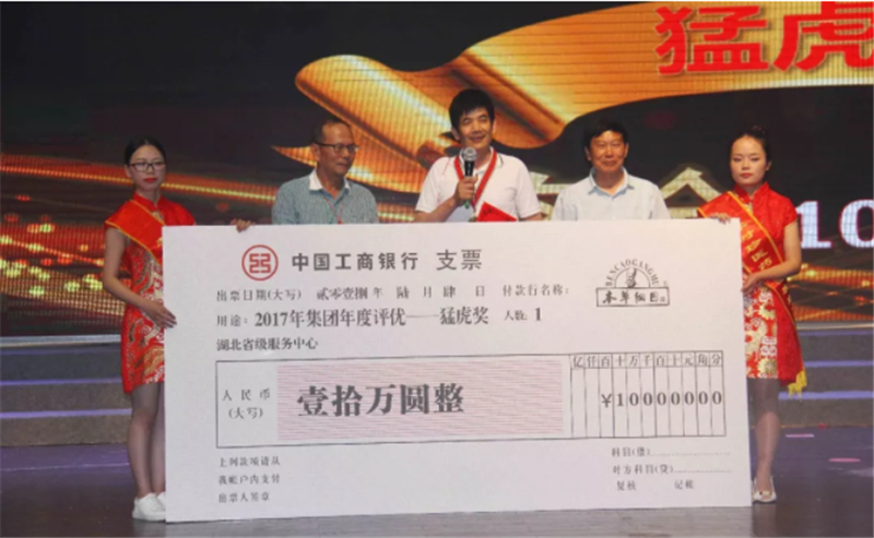 ▲整体业绩总量NO.1“猛虎奖”湖北代表领奖