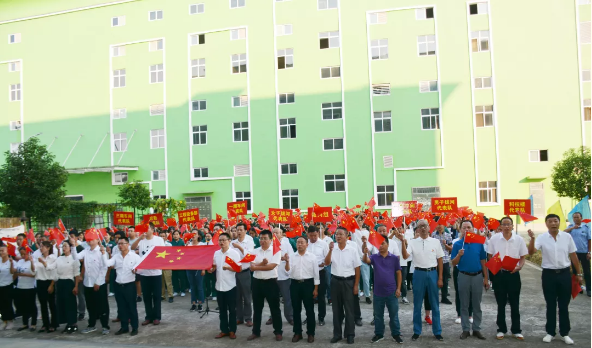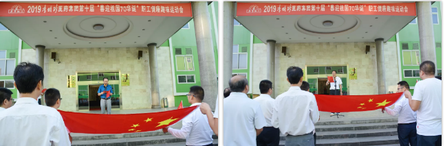 为表达我们医药儿女对祖国70华诞的祝福,在运动会开幕式环节,蕲春工厂全体干部职工挥舞国旗,一起合唱《我和我的祖国》,祝福祖国更加美好富强!