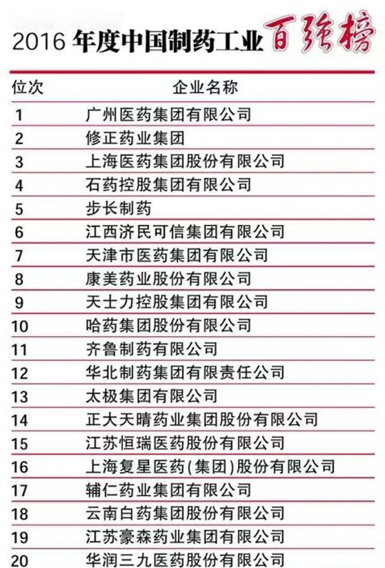 中国制药工业百强榜简介