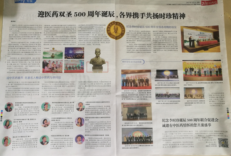 ▲21世纪药店报对“纪念李时珍诞辰500周年”系列活动做专版报道