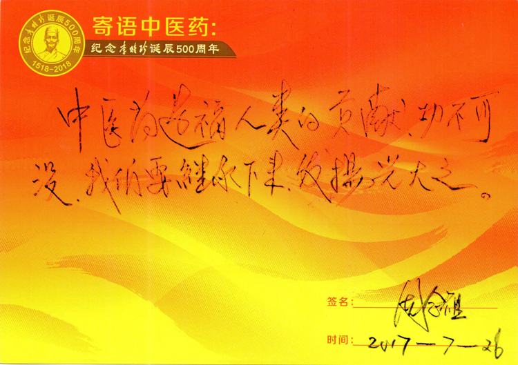 中医药对产地的要求是非常高的。对于李时珍,我们要学习他那精益求精的精神。在2018年纪念李时珍诞辰500周年即将来临之际,我们对他最好的纪念就是做好我们的工作,行好我们的医生,做好我们的药品,建好我们的平台。