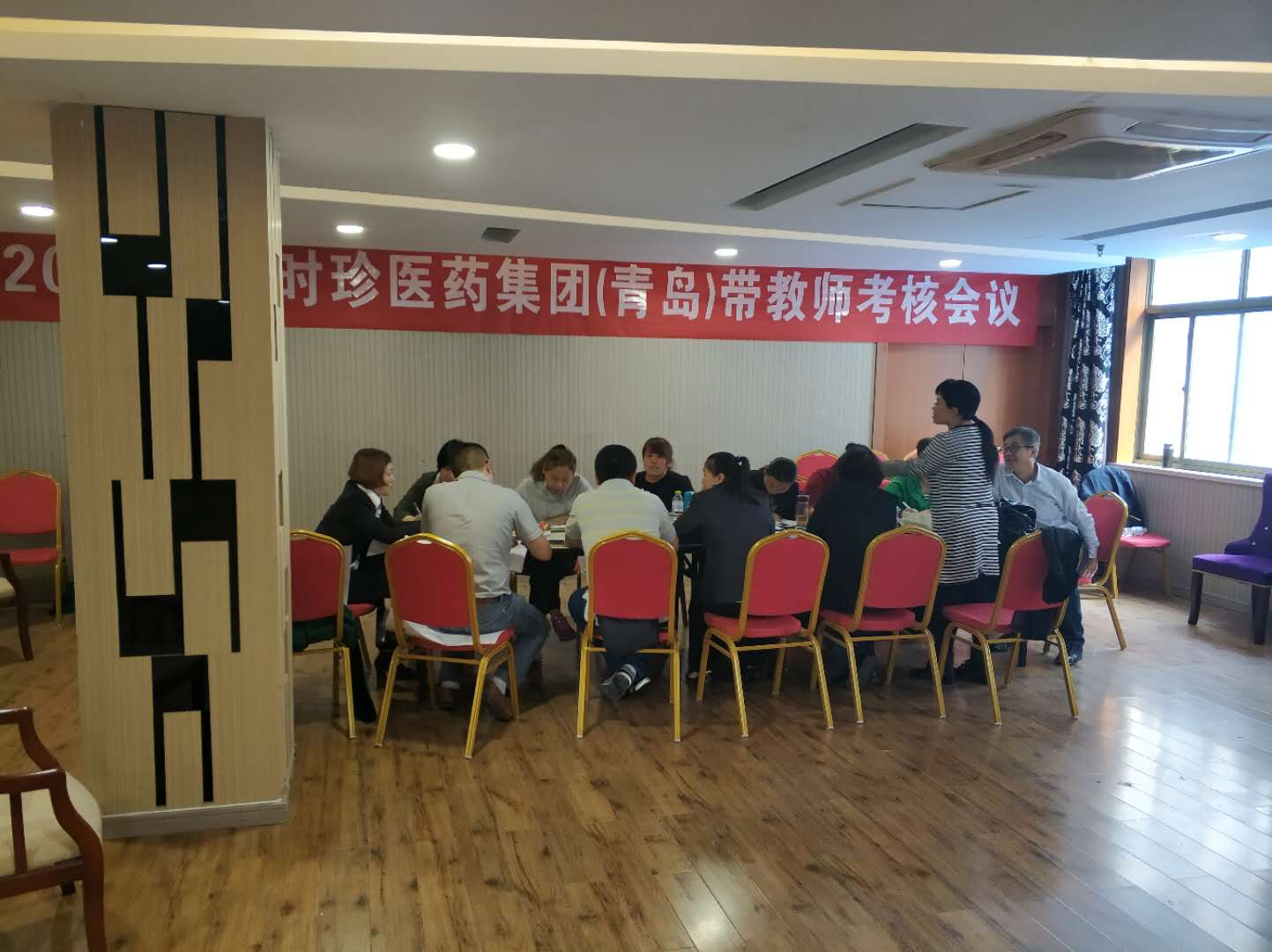 4月23日-29日,李时珍医药集团2018第二轮“高级带教师选拔”暨第三届高级培训师选拔会在青岛举行,集团总裁杨明江、营销中心副总经理李淑琴、培训学院院长孙青敏、山东服务中心总经理黄红霞及9个省服务中心总经理和近百名培训师参加培训和考试。
