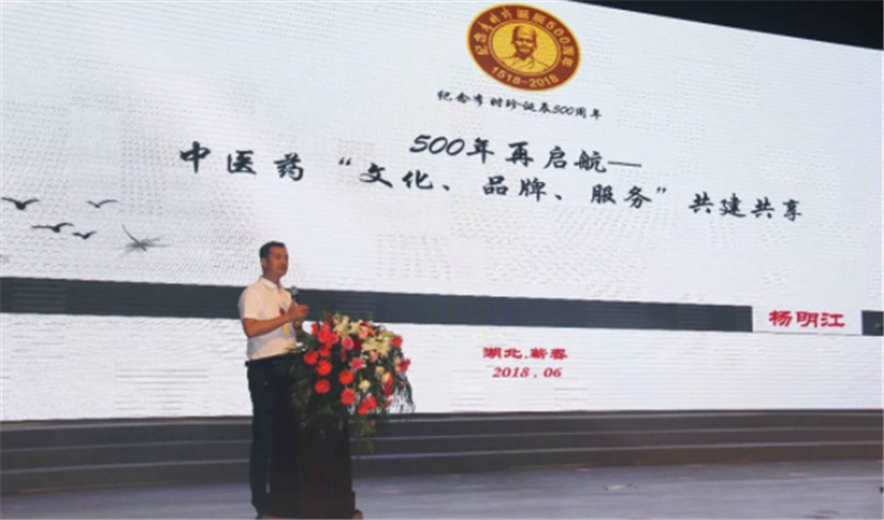 集团总裁杨明江发表“500年再起航——中医药“文化、品牌、服务”共建共享”主题演讲。杨总裁汇报了十年来李时珍诞辰500周年活动所取得的进展与成就,并对所有支持和帮助过的伙伴单位表示诚挚的感谢。十年征尘未洗,整装接受全球检阅,接下来还将继续优化企业生态系统、整合业态优势资源,凝聚核心力量,共建共享中医药文化、品牌和服务成果,实现企业稳健发展新生态。