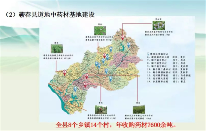 ▲蕲春道地中药材基地建设分布图