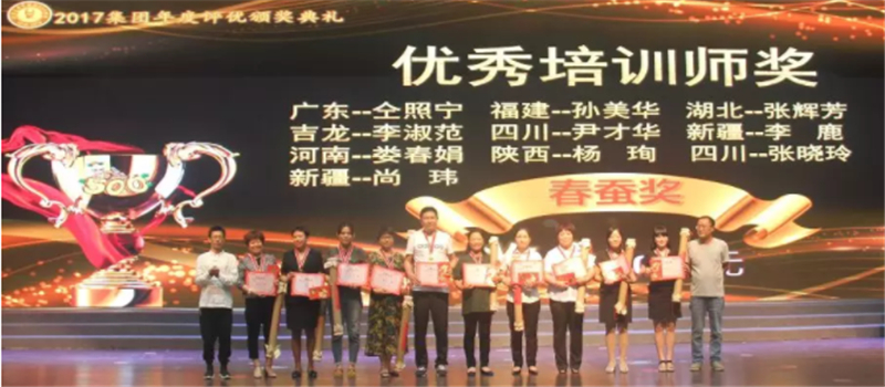 ▲优秀培训师奖“春蚕奖”获奖者领奖