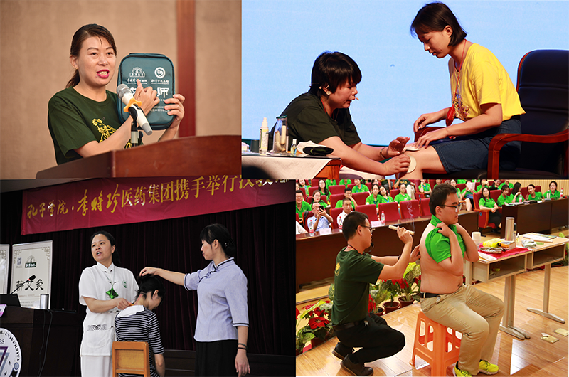 2017 年,孔子学院总部与李时珍医药集团签署了《关于关怀志愿者与弘扬中华文化的合作备忘录》,旨在“关怀志愿者、弘扬中医药文化、推进中医药走向世界”,具体形式为李时珍医药集团为汉语教师志愿者举办中医相关培训和体验,并提供多种中医文化物料等。同年,双方合作在厦门大学成功举办两场培训活动。今年,活动规模进一步扩大,李时珍医药集团派出高级培训师、艾灸师、刮痧理疗师为近千名即将赴五大洲100余国任教的志愿者进行培训,内容包括:中医临床知识课程、传统中医疗法体验、中医养生保健讲座、李时珍中医文化产品展等,为志愿者赴海外传播优秀中医文化提供了专业的理论与实践支撑。活动现场,国内多家知名连锁药店为志愿者免费赠送中医文化产品。