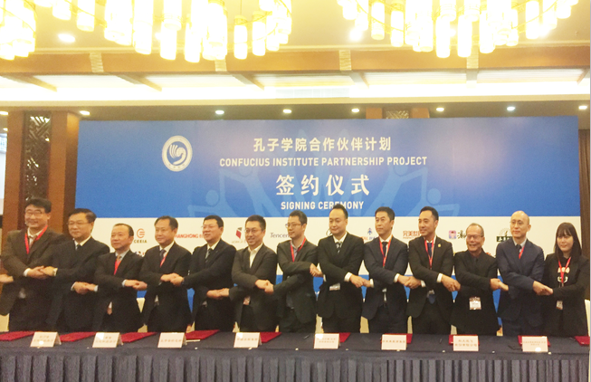 12 月5 日,第十三届孔子学院大会在四川省成都市正式闭幕。闭幕式上,孔子学院总部/国家汉办启动了“孔子学院合作伙伴计划”,李时珍医药集团等17家企业与孔子学院总部/国家汉办签订了战略合作协议,共同参与支持孔子学院发展。